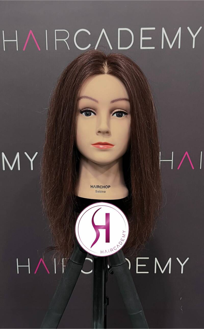 Oefenhoofd Sabina 100% echt haar bruin